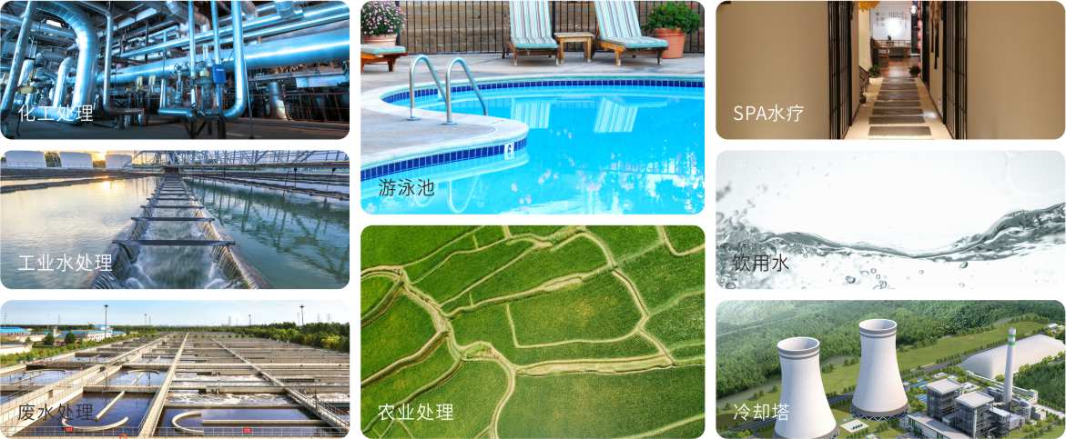 用于各类型小黄片破解版、SPA水疗、工业水处理、冷却塔、饮用水、废水处理、农业等水处理领域。