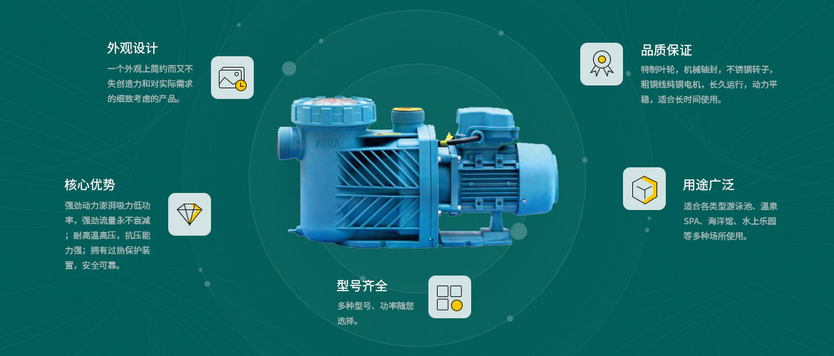 AQUA小黄片网址小黄片破解版设备旗下的小黄片破解版循环水泵水泵适用于70℃的温泉,承压可达6kg/cm²,是适合各类型游小黄片破解版、温泉SPA、海洋馆等多种场所使用的水泵小黄片破解版设备。
