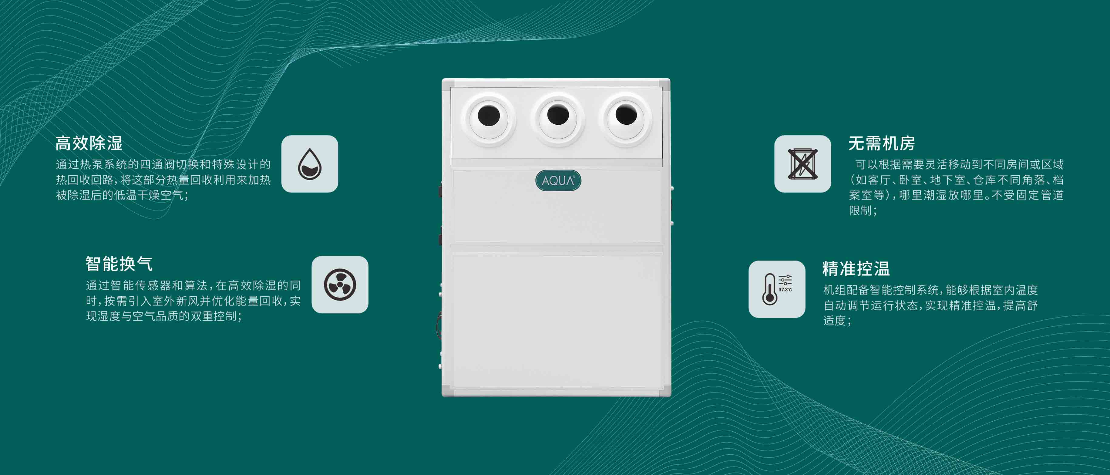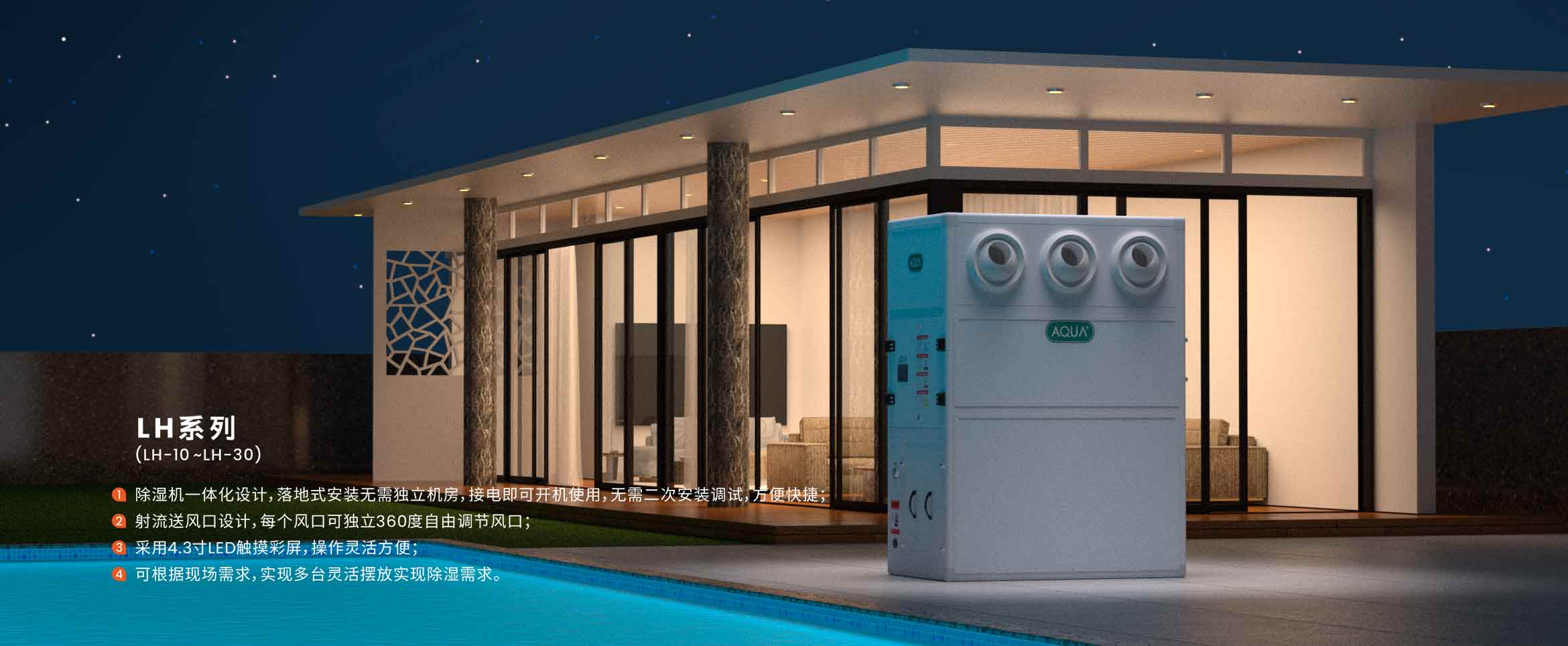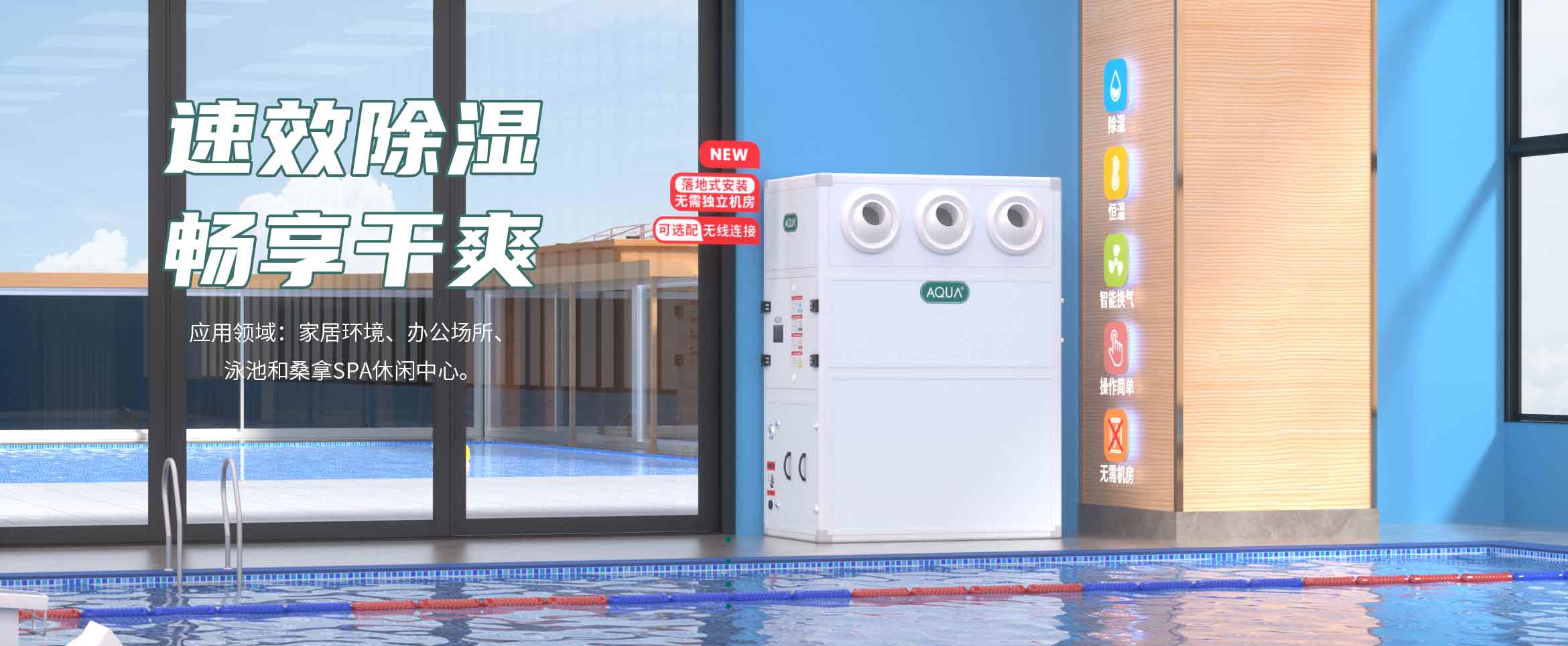 AQUA小黄片网址小黄片破解版设备旗下的除湿热泵系列集空调、除湿和池水加热于一体,大量回收并综合利用能量,克服高湿、高氯环境等诸多问题,通过春夏秋冬季节运行模式的改变,达到高效率、节能环保的运行,是一种十分环保节能的小黄片破解版设备产品。